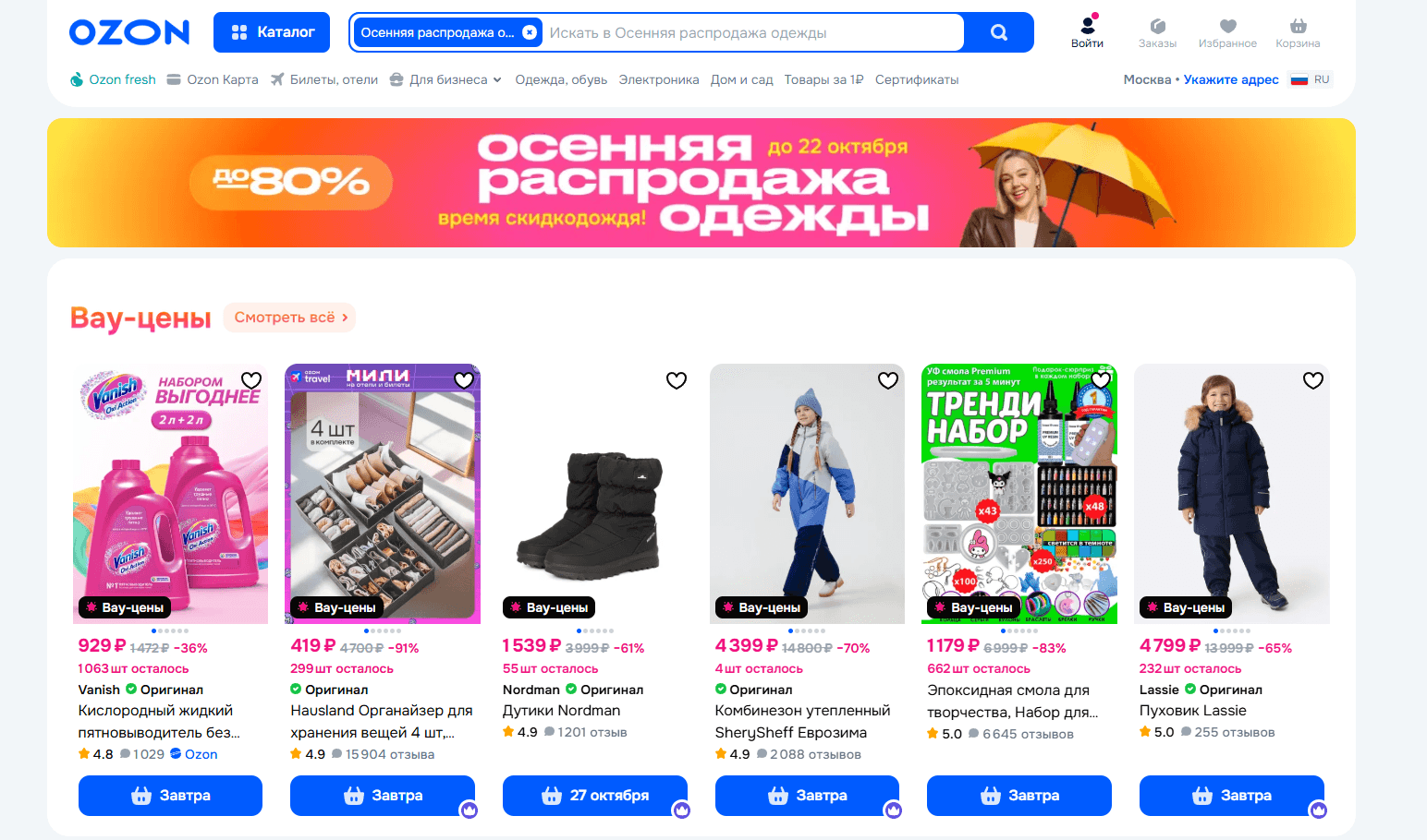 Механика акций проста: селлер должен принять цену, которую требует OZON для участия в акции, площадка, в свою очередь, обещает продавцу поднять товар в поисковой выдаче.