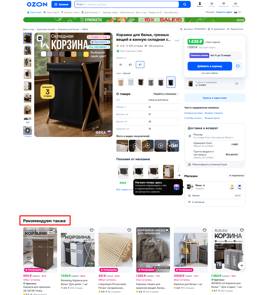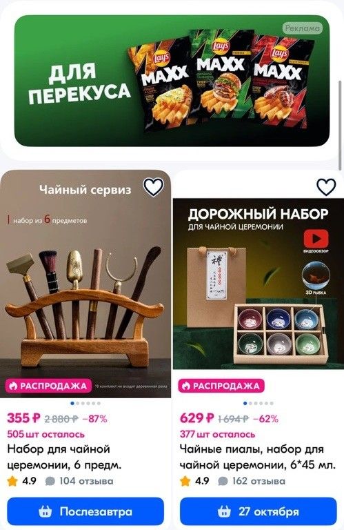 - Плашки с акциями, попадание в подборки акционных товаров;